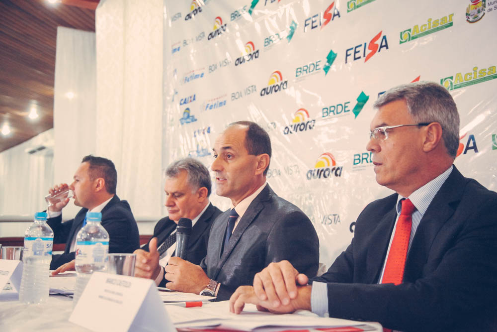 “Não podemos ficar parados. É preciso empreender, desbravar e ocupar novos espaços e horizontes. A Feisa nos inspira a inovar”. Foi com essa frase, carregada de otimismo e boas perspectivas, que o presidente da Associação Comercial, de Serviços e Agronegócio de Sarandi (Acisar), Carlos Alberto Lucietto, lançou a 19ª edição da Feira da Indústria de Sarandi (Feisa) na noite da última quarta-feira (22). O evento marcou oficialmente o início dos preparativos para a feira, que neste ano ocorre entre os dias 27 de abril e 1º de maio, no Parque de Exposições Pedro de Marco. Durante o jantar, realizado no Clube Comercial de Sarandi, Lucietto lembrou o potencial sarandiense e ressaltou as conquistas do município nos últimos anos. O Produto Interno Bruto (PIB) de Sarandi, por exemplo, apresentou uma considerável variação positiva na última década. Em 10 anos, entre 2004 e 2014, a soma das riquezas do município aumentou mais de 200%, chegando a R$ 713 milhões. “A Feisa é responsável pela pujança do nosso município e o projeta no cenário regional, estadual e nacional”, afirmou Lucietto.